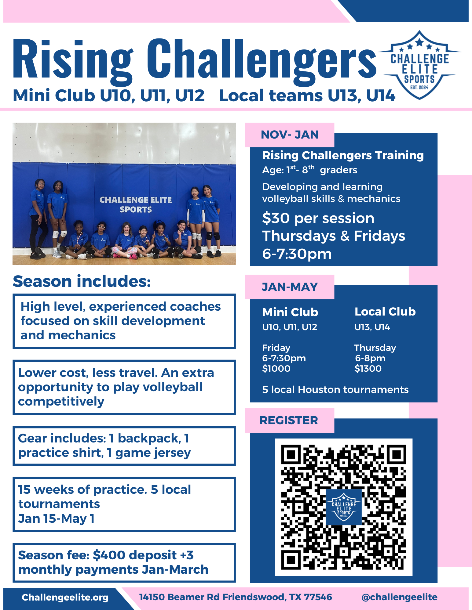 We provide a state-of-the-art athletic complex designed for the whole family. Located at 14150 Beamer Rd, Friendswood, TX, our 10-acre facility offers a unique blend of indoor and outdoor sports opportunities, including volleyball, basketball, pickleball, futsal, and more. Family-owned and built with care, Challenge Elite Sports is more than just a place to play—it's a community where athletes can train, families can bond, and everyone can discover the joy of sports. Whether you're here to improve your game, compete in tournaments, or simply enjoy quality time with loved ones, we are committed to providing a first-class experience for all.